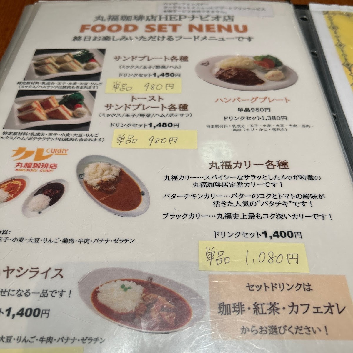 Introducing the Menu at Marufuku Coffee Shop HEPnavio